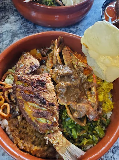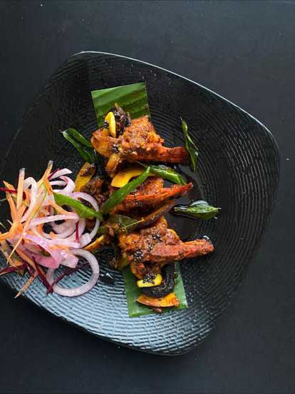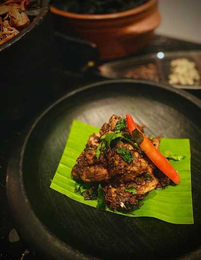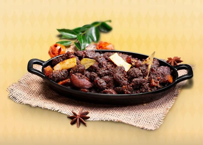 Angadi Bakes and Restaurant is known for its diverse offerings of Indian and Kerala cuisine, featuring popular dishes such as biryani and specialized Malabari preparations. Pothi Porota with Beef, a Kerala beef curry wrapped in banana leaf, and a chicken fry made with coconut and spices.